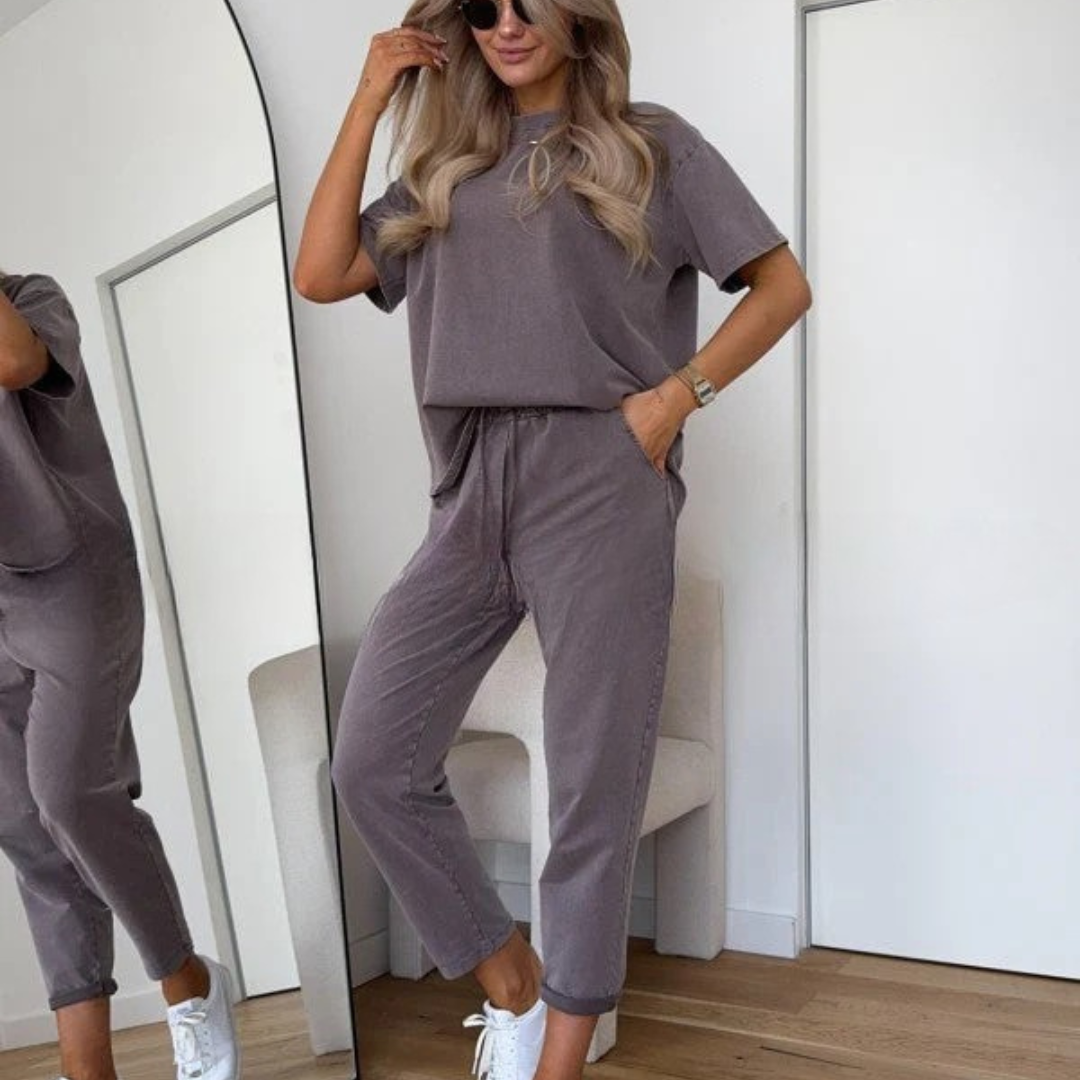 Wejdź w subtelną elegancję dzięki temu casualowemu, dopracowanemu zestawowi dwóch części. Zaprojektowany z myślą o nowoczesnej kobiecie, która ceni zarówno komfort, jak i styl, Eden oferuje zwiewną sylwetkę oraz miękki materiał, który porusza się razem z Tobą. Idealny na leniwe weekendy, spontaniczne wyjazdy lub po prostu relaks w stylu.